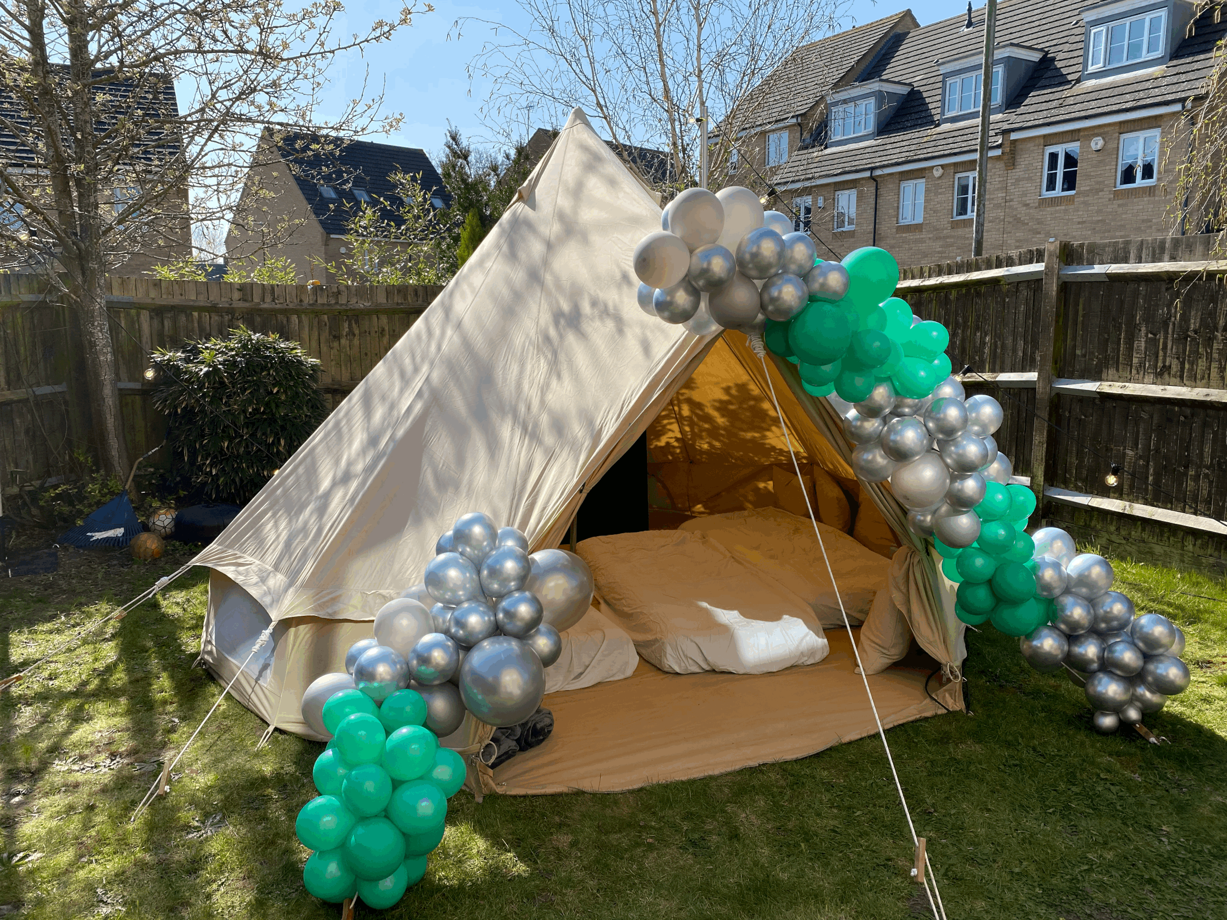 The ultimate Bell Tent experience, This simple yet elegantly designed structure is now available for your next lockdown celebration, complete with festival style add ons and can be used for a variety of applications including: Kids Den, Cozy Cinema, Glamping and so much more.