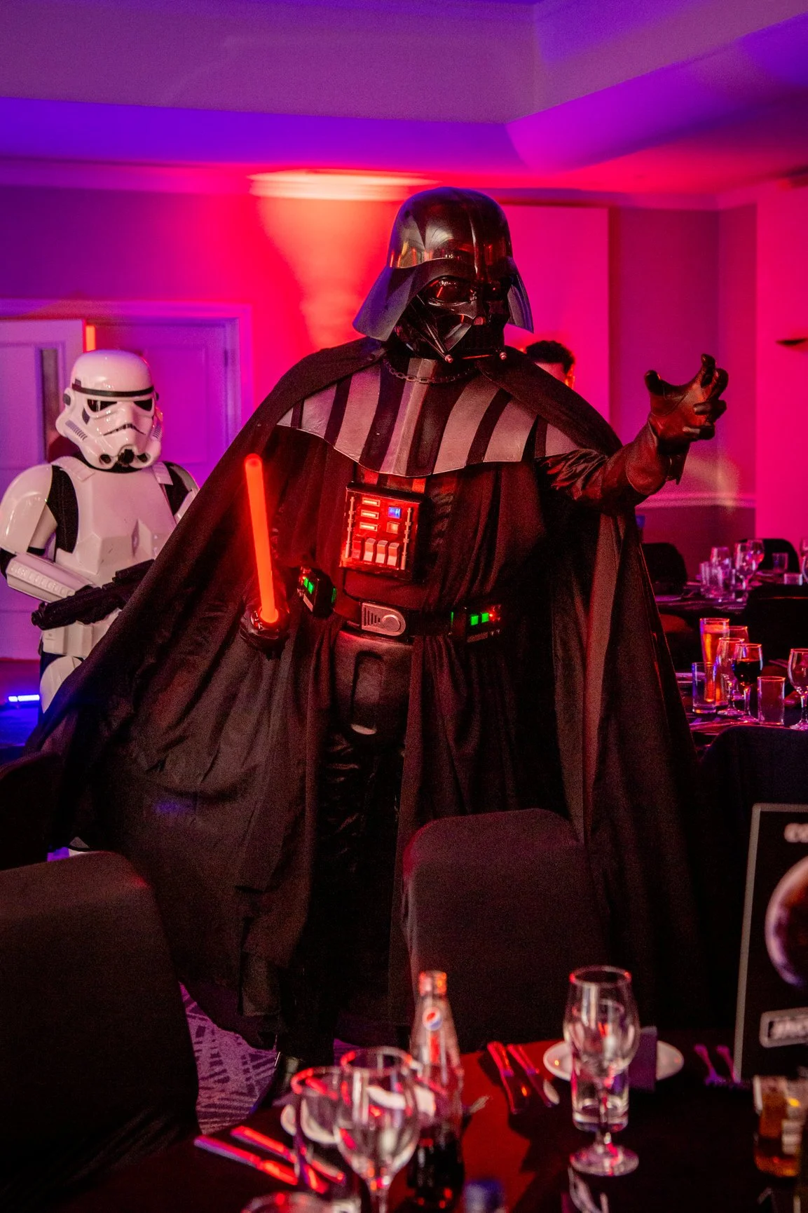 Our impersonator is a versatile entertainer who can adapt to a wide range of events. Whether you're planning a corporate gathering that craves a galactic touch, a private party in need of an epic entrance, a wedding that desires a memorable and unique act, or any special occasion looking to inspire awe, our Darth Vader impersonator is the perfect choice.