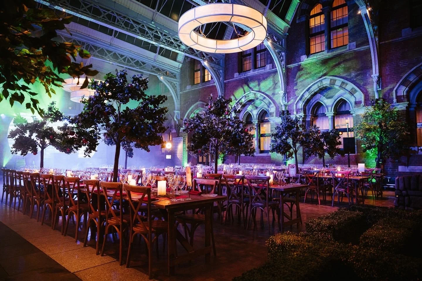 WE BUILT A CASTLE Creating a magical kingdom where guests arrived outside the castle walls, complete with ornate fountain and dressed market stalls, continuing through the giant metal gates to the courtyard where apple trees and hedgerows encapsulated a banquet with long wooden tables and benches fit for a king or queen.